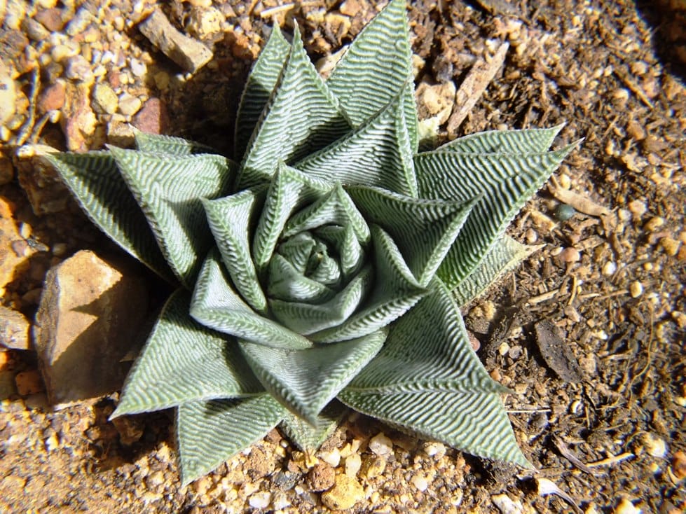 Haworthias in the wild grow in Southern Africa. They are relatively small (pot sized) plants that are classified as succulent – which means that they can cope with relatively harsh waterless hot environments. Their leaves are swollen to store water and may be green or attractively coloured. They are however not frost hardy, which means that for cultivation they need either a sunny windowsill or preferably a greenhouse.