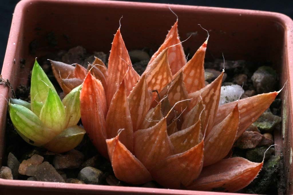 Haworthias are grown for their shape and markings. There are many different types (or species). Some collectors also grow hybrids, which are crosses between two or more plants and are selected for their attractiveness. In many cases they multiply by producing “pups” or offsets and may also be grown from seed. A seed distribution service is available to members of the Society.